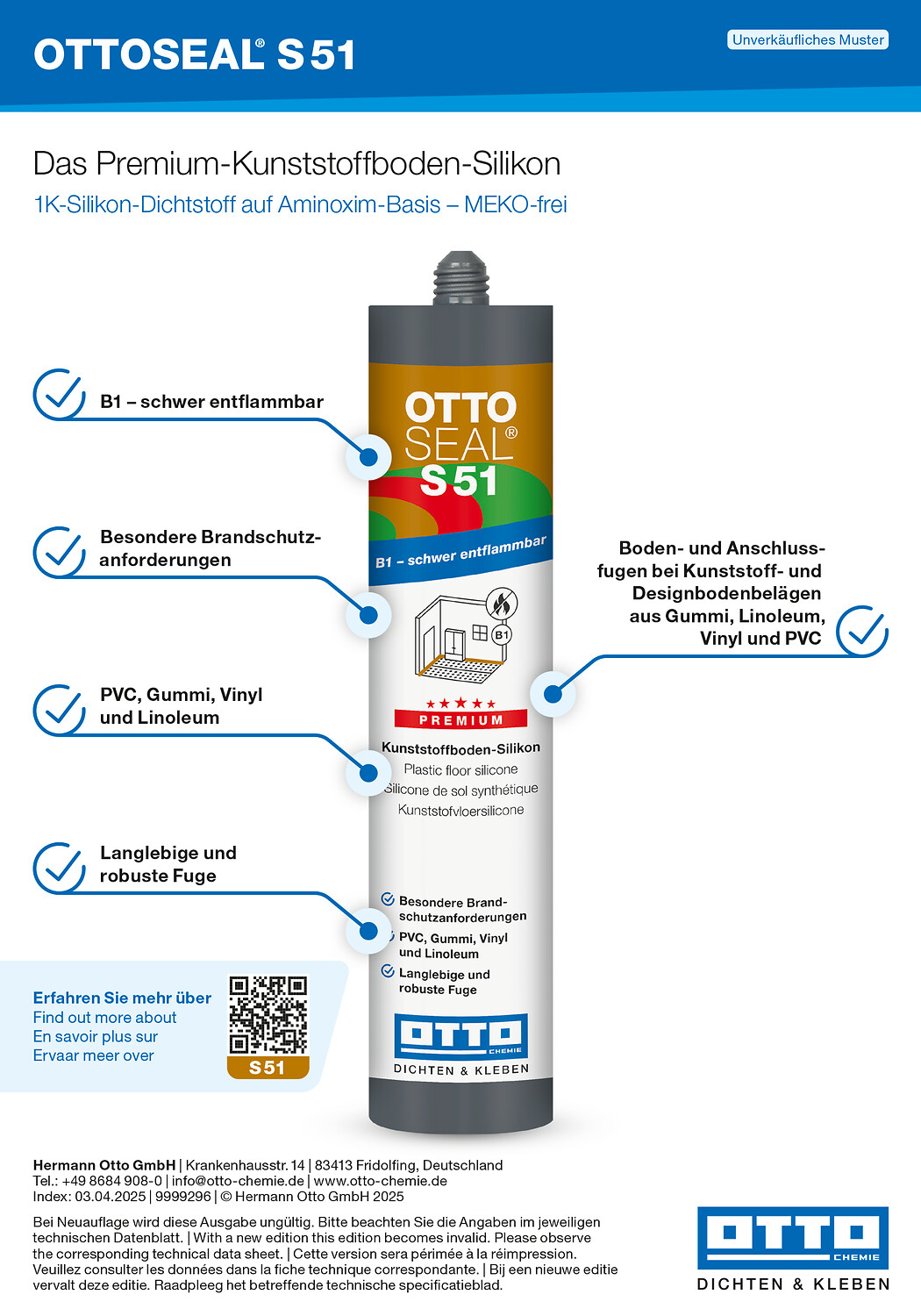 Produktinformationen "OTTOSEAL® S 51 - Das Silikon für PVC-, Gummi-, und Linoleumböden"