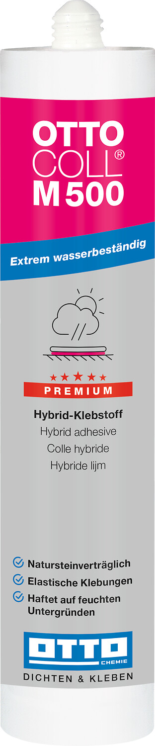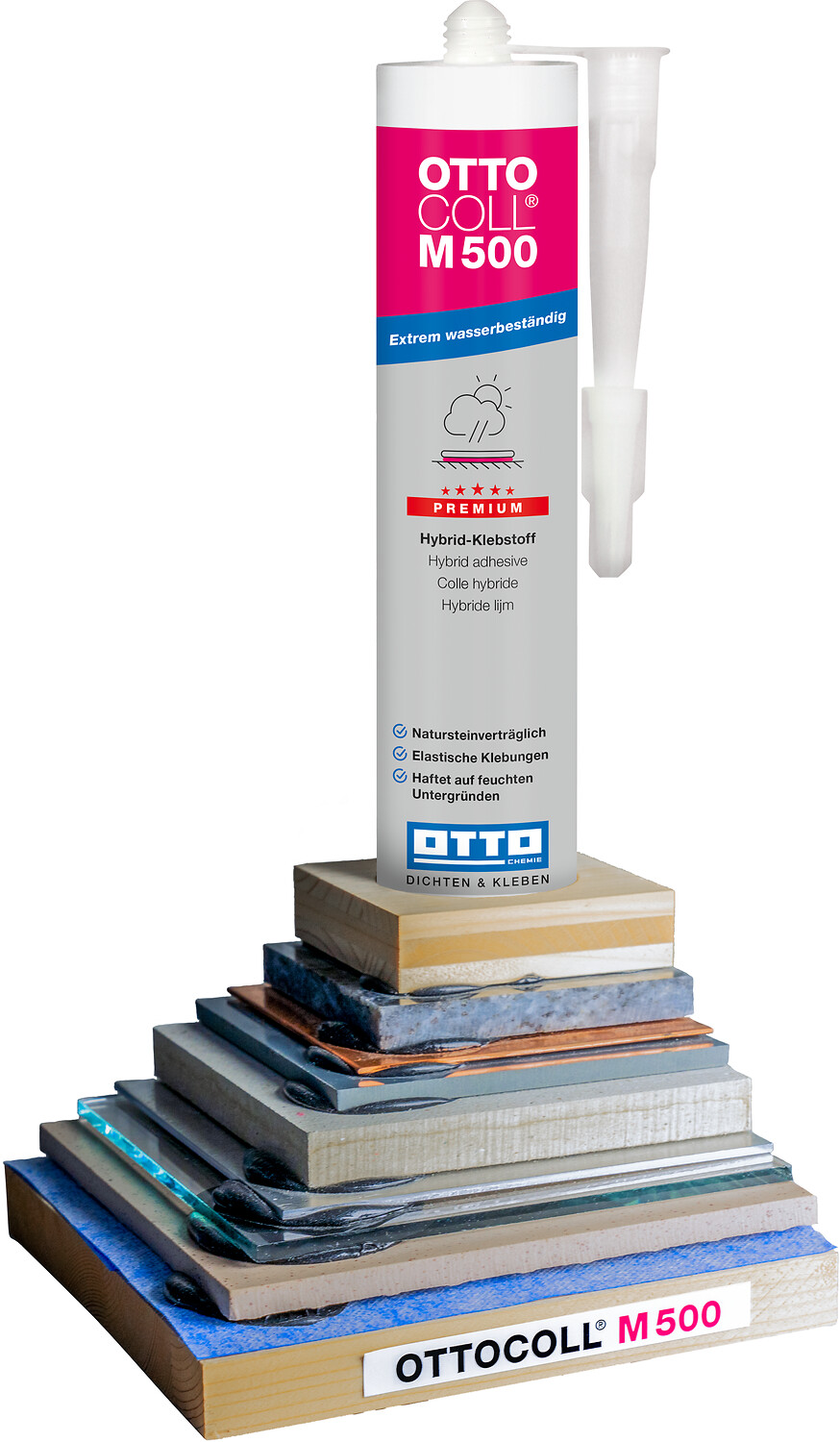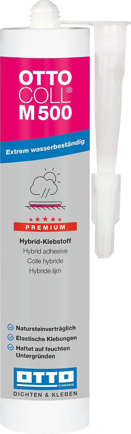 OTTOCOLL® M 500 ist der vielseitige Premium-Kleb- und Dichtstoff von OTTO und zeigt ein sehr gutes Haftungsspektrum auf den verschiedensten Untergründen, ist aber auch speziell für das Kleben von lackiertem und emailliertem Glas geeignet und geprüft. Der Klebstoff zeigt die für Hybrid-Dicht- und Klebstoffe typischen Eigenschaften, wie z.B. sehr gute Haftung ohne Primer auf den verschiedensten Untergründen, sowie hohe mechanische Beanspruchbarkeit bei gleichzeitig spannungsausgleichender und schwingungstoleranter Abdichtung.